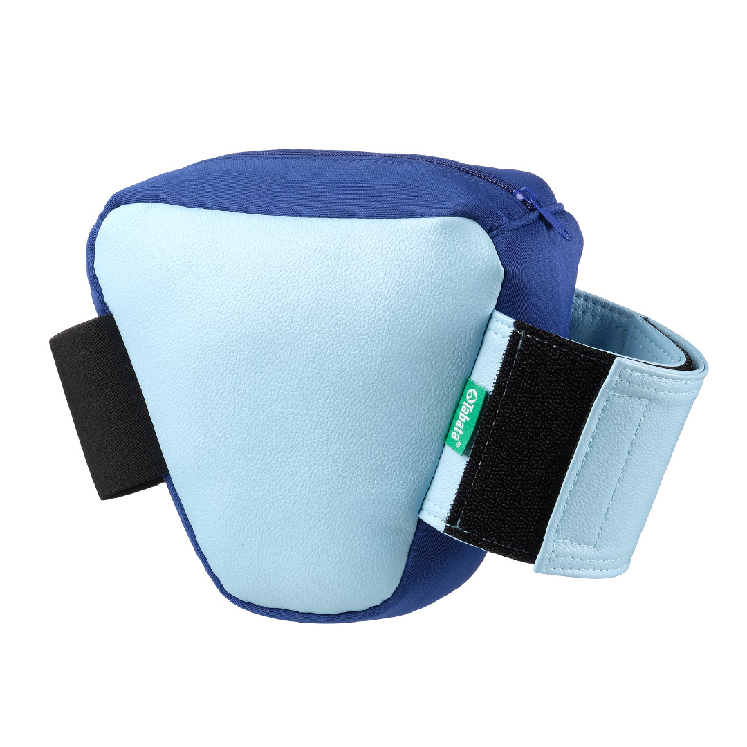 クッションタイプの三角先生。ミニサイズ設計で手首に近い位置へ装着でき、両腕の固定も可能。ハンドダウンを意識しやすく、フルショットにも対応します。